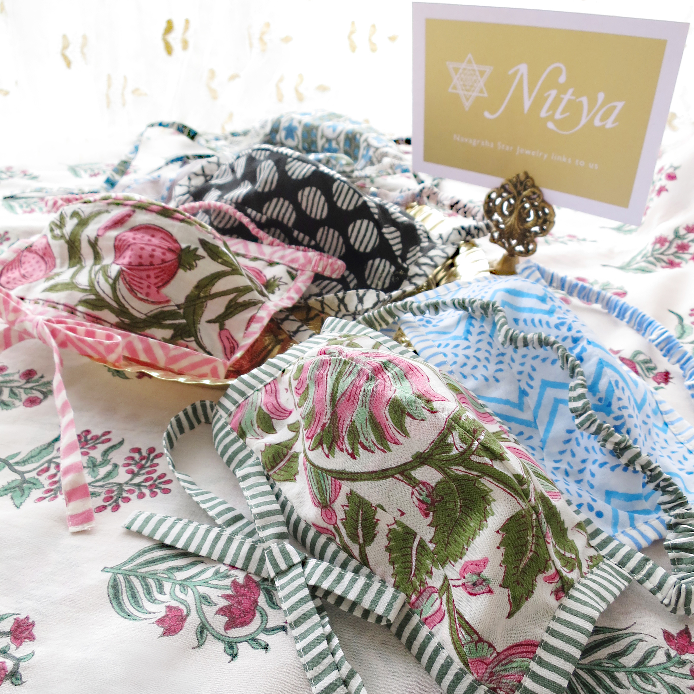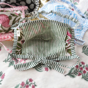 インドの伝統的な手工芸品であるハンドブロックプリントの布マスクです。