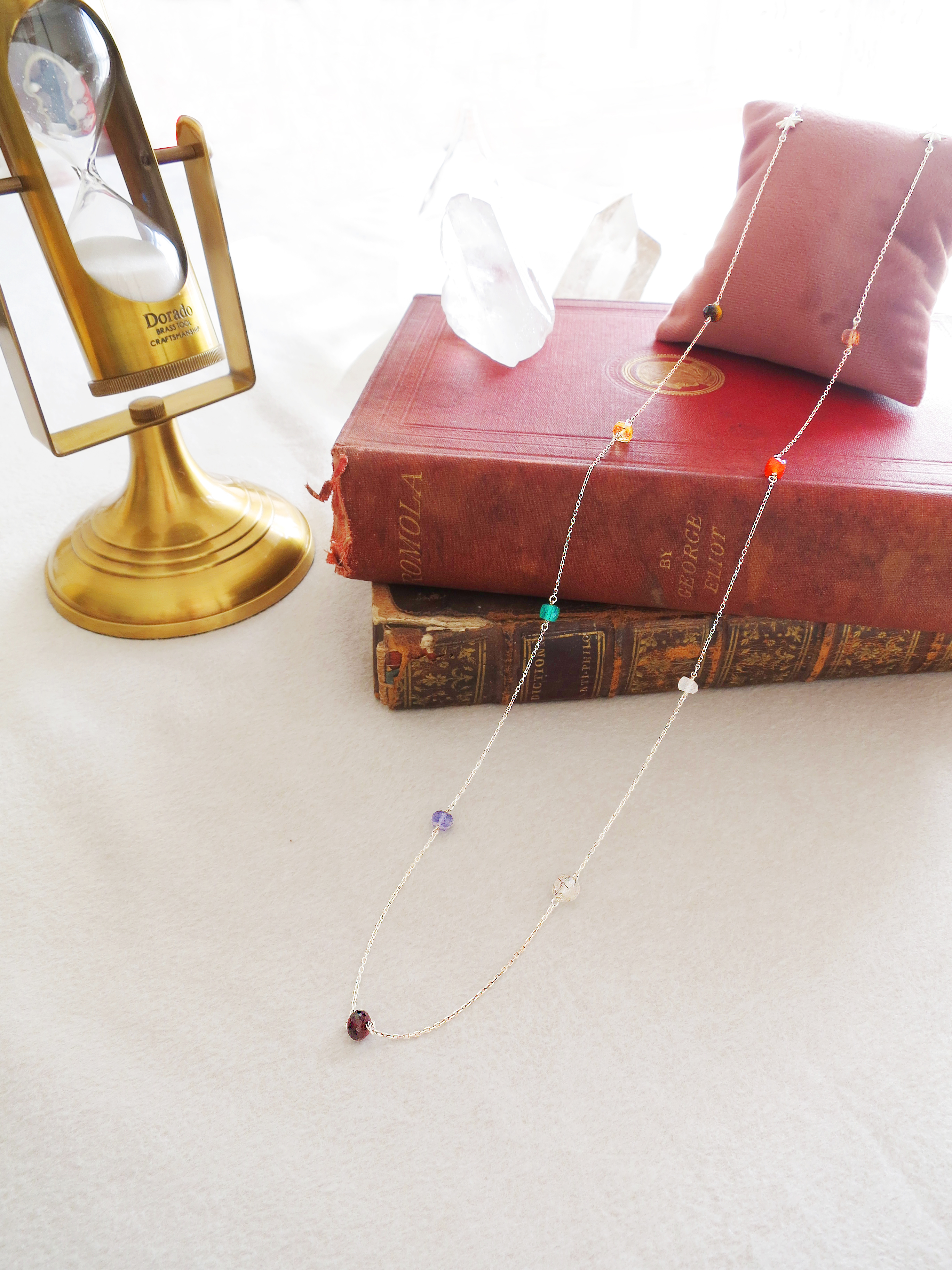 ワークショップでは、星とリンクするといわれる宝石たちをご自身でシルバー・チェーンで繋いでナワラトゥナを完成させます。